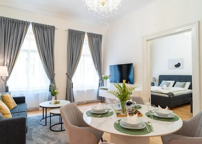 Das 78 m² große Crystal Apartment In Center Of Prag liegt ca. 5 Gehminuten von der U-Bahn-Station Muzeum entfernt und der Nähe von der Staatsoper Prag.
